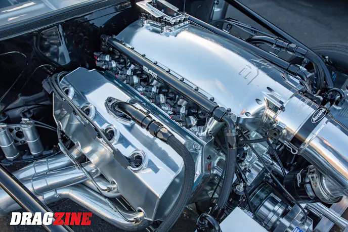 As fate would have it, the perfect replacement fell into his lap one day while he was sitting in the cockpit of one of the commercial airplanes that he pilots for a living. “Someone called to buy my motor and literally five minutes later another guy called and said he was selling a Hemi,” shared the man of how he wound up with a wicked Brad Anderson Enterprises-built 472-inch bullet for his “Bullet” in late 2020. “I freshened it up myself thanks to help and knowledge from my friend and Top Alcohol Funny Car crew chief, Tony Eben.”