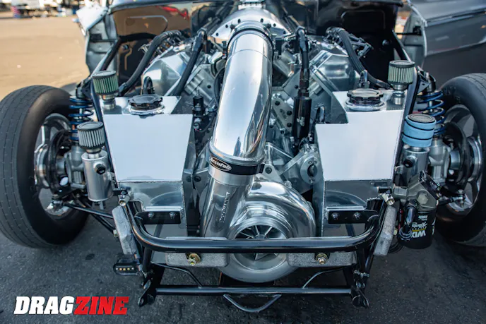 After the chassis work was complete, Guthrie placed a 540 cubic-inch big-block Chevy engine with a four-speed JEFFco Transmissions By Gear Vendors planetary-style manual and ProCharger supercharger between the framerails. “We tested and ran 4.33 at 170 mph in Las Vegas with that combination but the writing was on the wall. We knew it wouldn’t go any faster,” Guthrie shared of the early days with his new car.