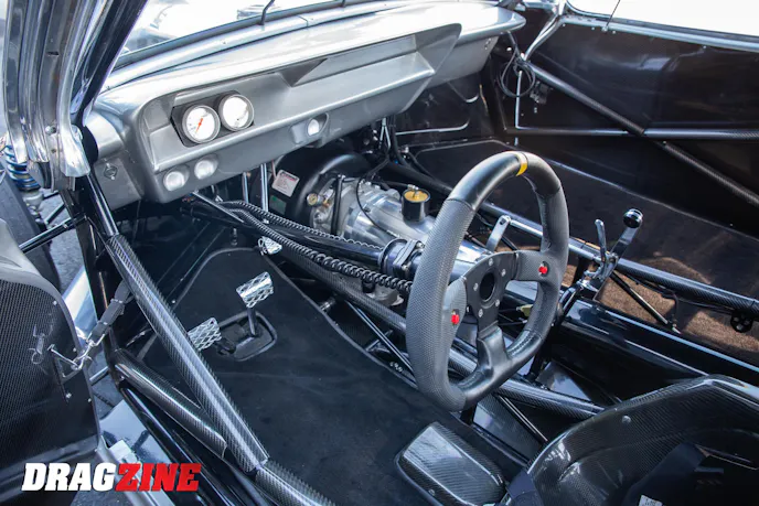 “At first, we had a two-speed Jeffco in it but that wound up not being enough so now it’s got a three-speed Jeffco. I’ve always been a clutch guy and this was the last thing I could do to hold on to a stick shift-type car,” explained Guthrie, who raced the car at the Street Car Super Nationals in Las Vegas in November of 2020 in Outlaw 10.5 trim and enjoys the “cool factor” of pulling the levers on a manual. “It was only the third run on the new engine and we were completely lost!”