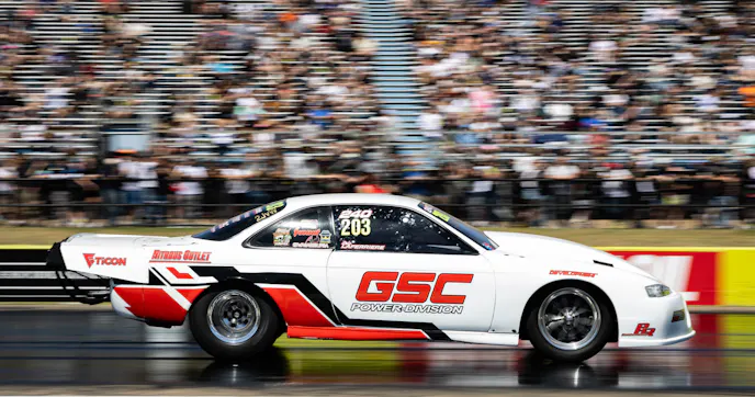 LaFerriere, driving the venerable “White Rice” 1995 Nissan 240SX with turbocharged, inline-six Toyota 2JZ horsepower, and LaSala, with his popular “Snot Rocket 3.0” twin-turbo, Ford Coyote-powered S197 Mustang, traded barbs throughout six rounds of qualifying at the Texas Motorplex. Each of them knocking on the door to the five-second zone on 275 drag radials. So locked together were the two performance-wise that they each record runs of 6.053 and 6.052 just minutes apart in an earlier session to trade number one.