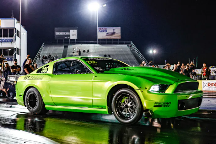 LaFerriere, driving the venerable “White Rice” 1995 Nissan 240SX with turbocharged, inline-six Toyota 2JZ horsepower, and LaSala, with his popular “Snot Rocket 3.0” twin-turbo, Ford Coyote-powered S197 Mustang, traded barbs throughout six rounds of qualifying at the Texas Motorplex. Each of them knocking on the door to the five-second zone on 275 drag radials. So locked together were the two performance-wise that they each record runs of 6.053 and 6.052 just minutes apart in an earlier session to trade number one.