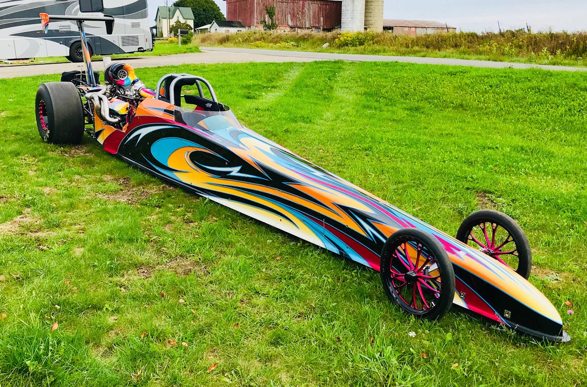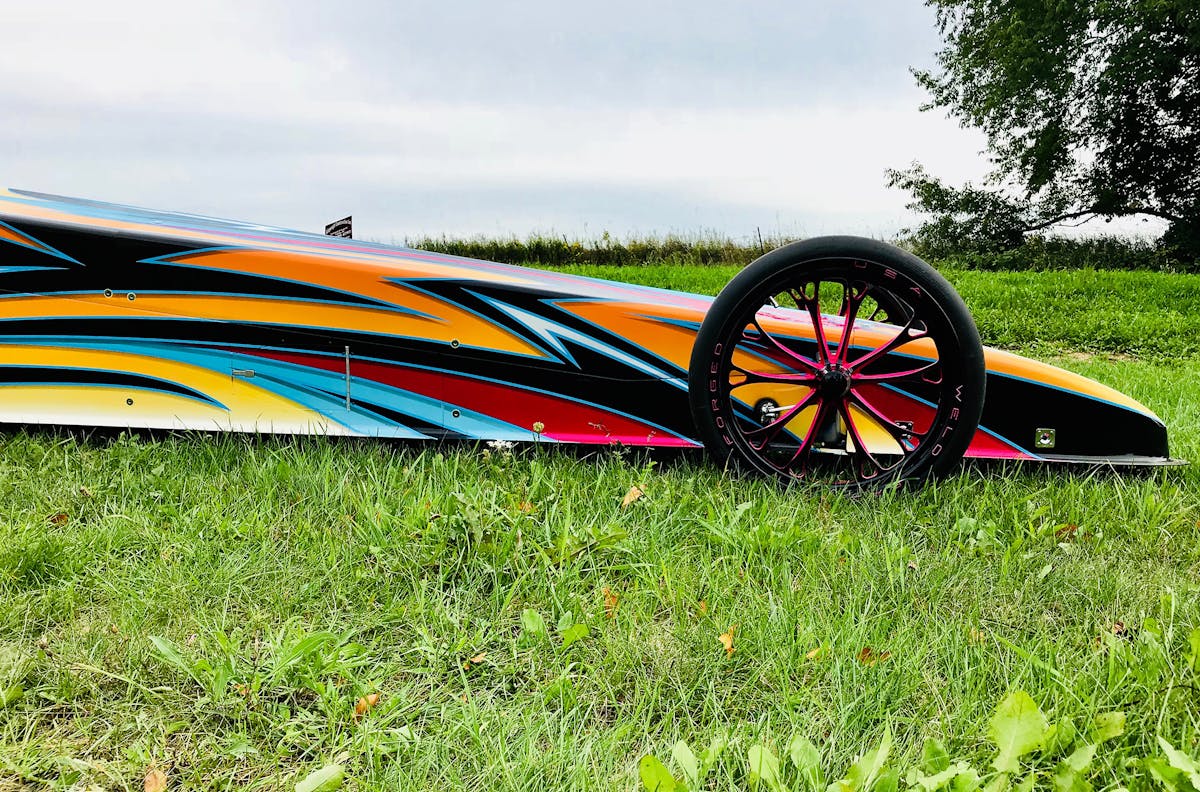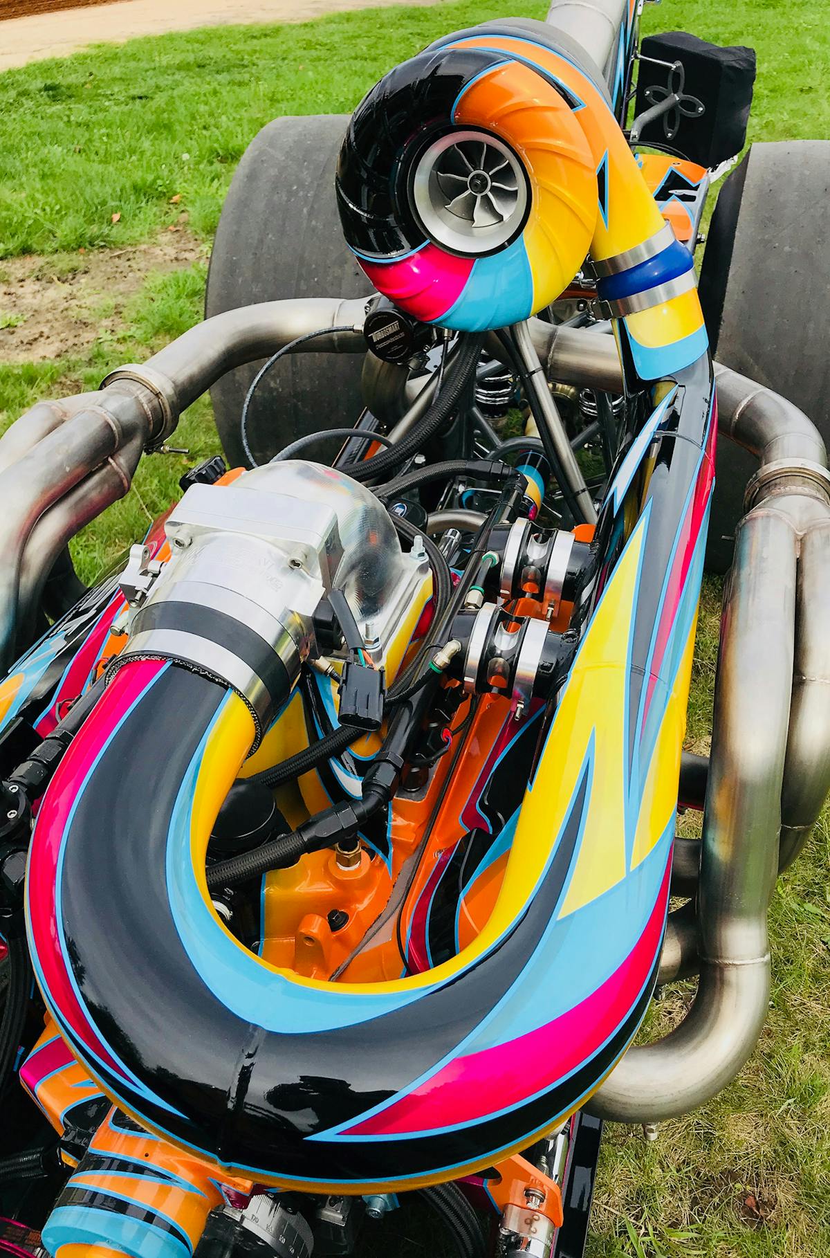 This stunning new Top Dragster is a collaborative effort between Michigan drag racers John Parkes and Todd Zeller that demonstrates the high-level trend to create flowing paint schemes on race cars, extending beyond the body panels to virtually every part and piece on the car — even places you can’t see without disassembly.