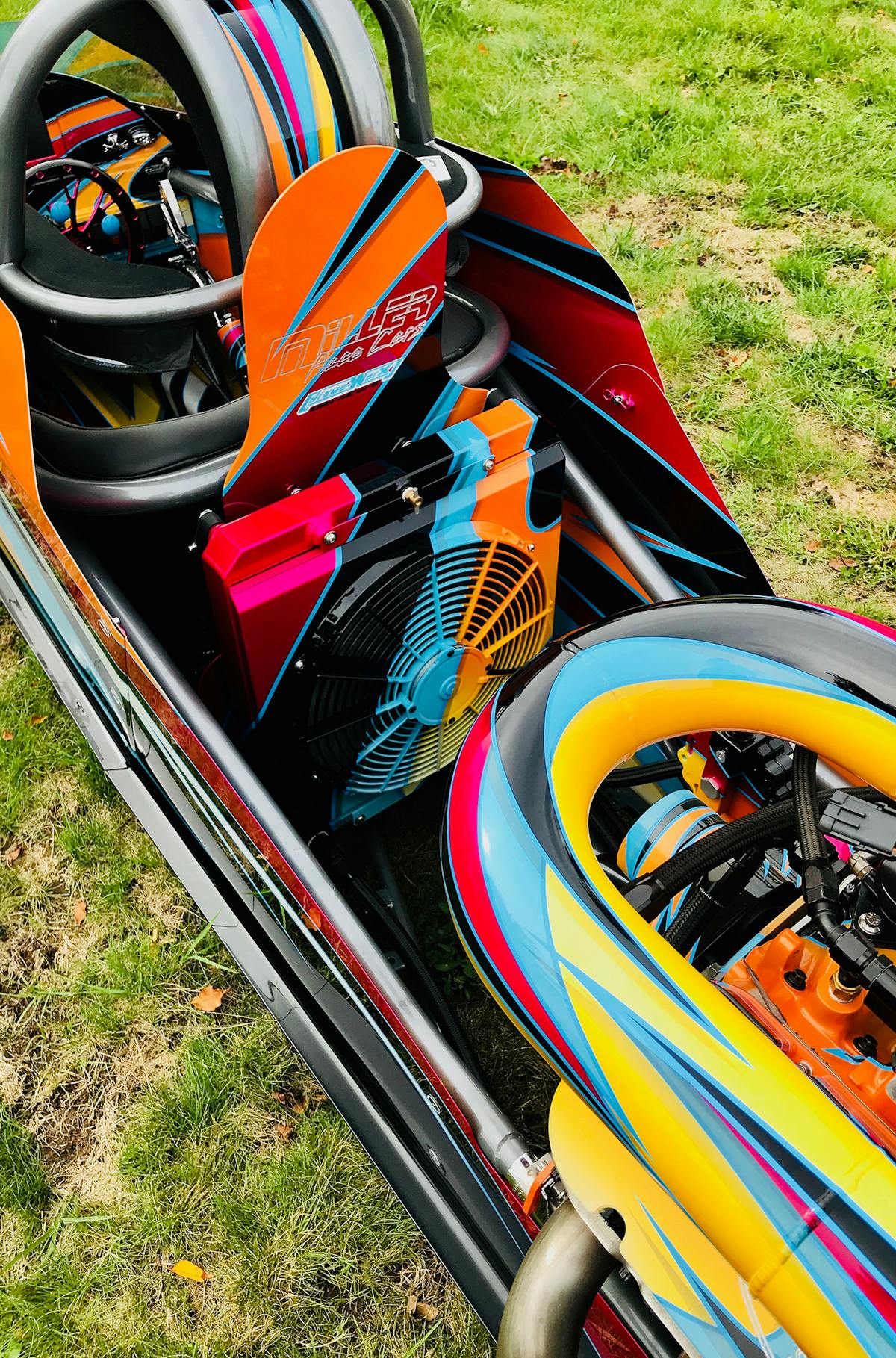 The pair works together on many customers’ projects, but they have excelled with the new 255-inch wheelbase Miller dragster owned by Zeller, which will compete in Top Dragster and stand out wherever it competes. Not only is the dragster trick in appearance, but the turbocharged/electronic fuel injection 540-inch big-block Chevy and new Miller chassis design will be recognized for its engineering prowess, as well.