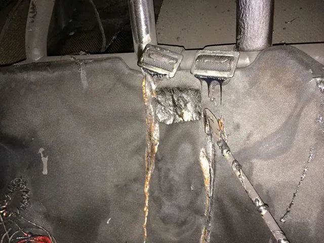The five-point harnesses melting was perhaps a miracle in disguise, as it allowed Lyle to escape the flames quicker than he would if he had to release the latch mechanisms.