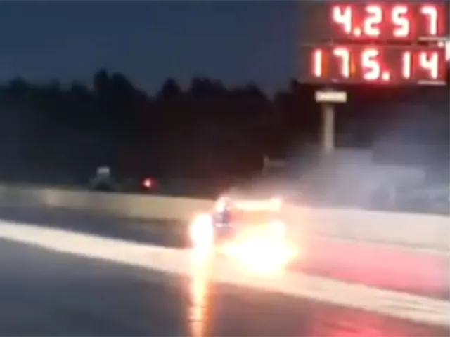 Lyle’s C5 Corvette moments after it erupted into flames alongside Jamie Hancock in the first qualifier at Lights Out VI.