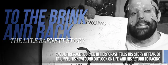 On September 24, 2015, radial tire racer Lyle Barnett’s life changed forever. The North Carolina native suffered life-threatening burns when his C5 Corvette, competing in Radial versus the World at Lights Out VI in Adel, Georgia caught fire after an injector failed, and caused a catastrophic engine failure. Lyle has faced a grueling recovery from his devastating injuries in the months since, including third-degree burns to his face and severe damage to his lungs. But, with a never-quit attitude, he vows to return to the scene of the life-altering moment, and eventually, to the driver’s seat.