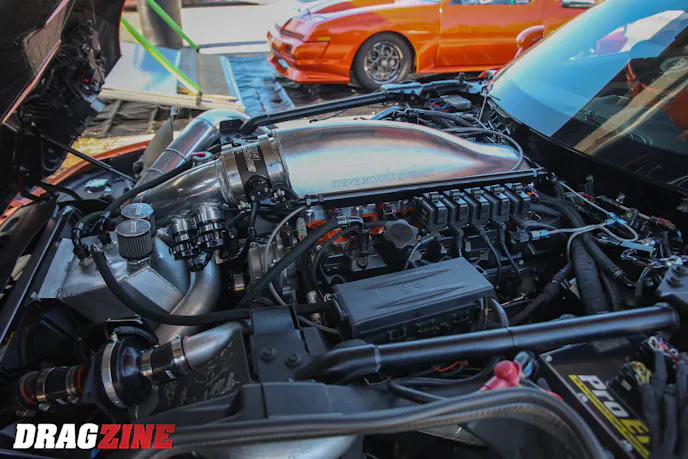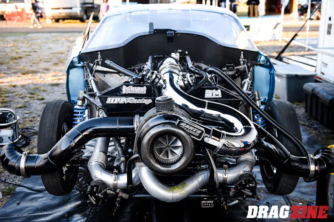 The car is powered by a Steve Morris Race Engines SMX (481X-style) big-block, with a big 140mm Hart’s turbocharger out front. The combination, Alvarez admits, comes at a bit of an initial disadvantage to the more mainstream and popular setups, but he and Sanders went that direction, both out of familiarity and a desire to prove a point.