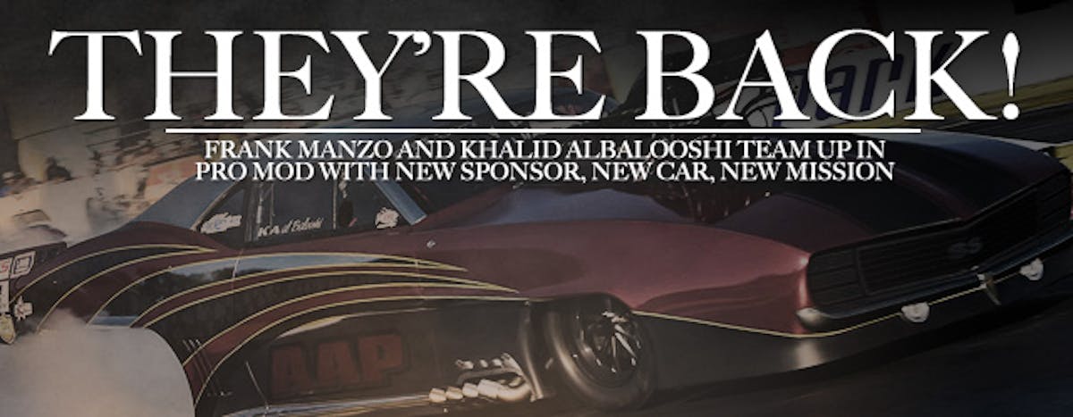 Frank Manzo, the retired and highly respected NHRA Top Alcohol Funny Car legend, has a running joke going on in his pit.