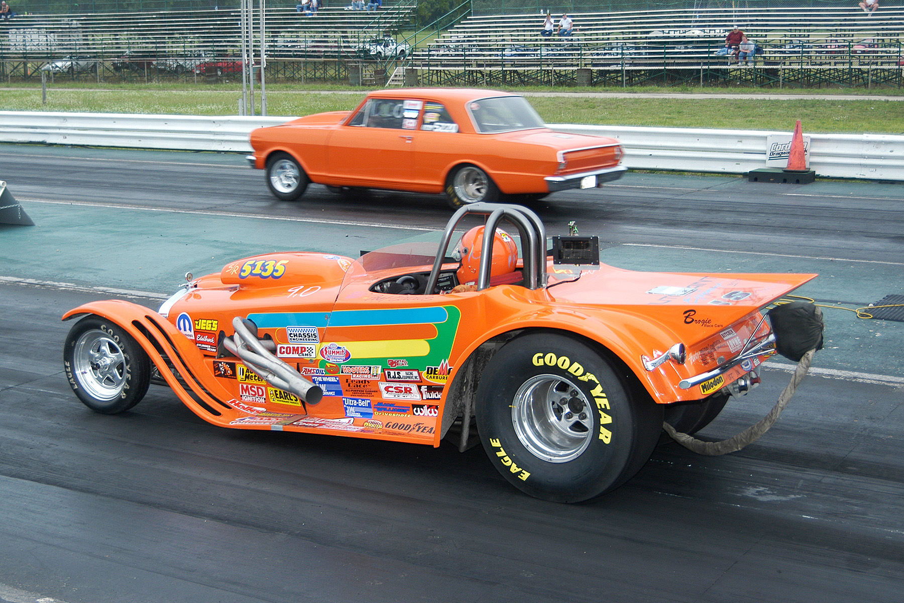 “I have made thousands of runs in my bracket Vega; when it hits the tires and might move a little at the 60-foot, I might have lost .100 in my E.T. But I learned over time and experience that, once in a blue moon, the dragster kind of rattles the tires at mid-track. My initial thought was I lost .100 but carefully reviewing each pass, the dragster just loved the wheel speed it caused. It took me time to figure that out.”