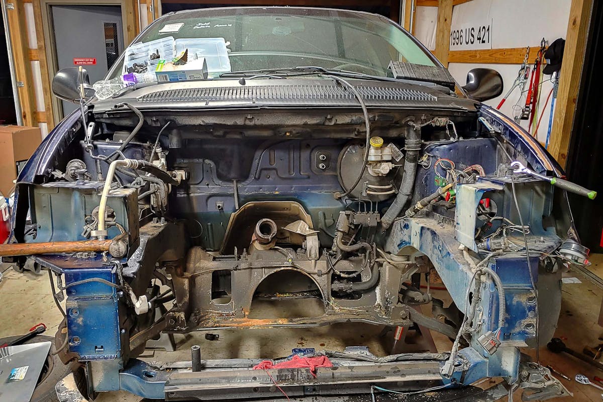 Now that Arnold had secured the chassis for his swap it was time to find the driveline. Arnold wanted to find a wrecked SRT4 and set a budget of $1,500 to secure what he needed. A suitable vehicle was located and bidding on the car got heated in a hurry, Arnold’s budget was busted, but he stayed in the game and won the car for $1,750…or so he thought. When the fees were calculated and the tow bill was paid to bring the car to him, Arnold was into the Neon for nearly $3,000, and he wasn’t even sure if it ran. Thankfully, the car did run and moved under its own power, so Arnold was ready to move onto the next phase of the build.