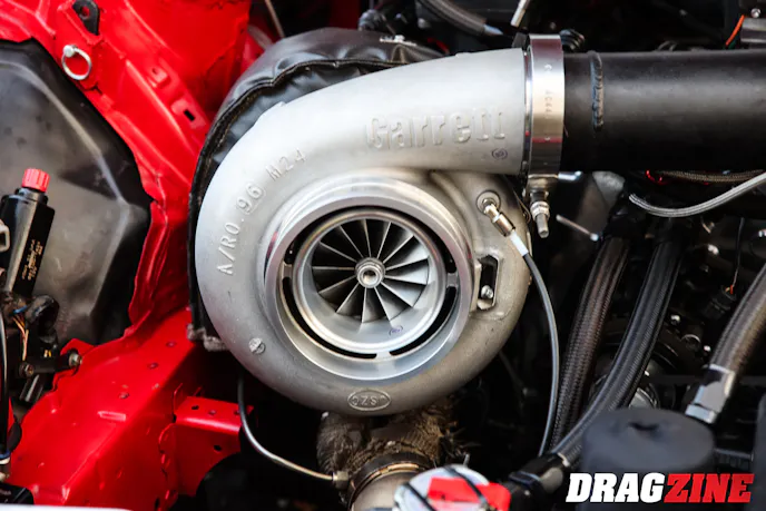 Jtineant also custom fabricated the T6-flange exhaust manifold which proudly displays a single 91mm Garrett GTX5533R GEN II ball bearing turbo pumping its spent exhaust gasses out through the massive 5-inch downpipe. Coupled with a TiAL 50mm blow-off valve and a Turbosmart Gen-V PowerGate60CG 60mm wastegate, the Garrett snail is capable of producing more than 1,400 horsepower.