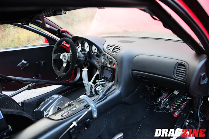 “The front brakes are a custom kit from Bacon Racing using Wilwood components with a custom mount bracket by Wilmeranic Mazda and the rear brakes are OEM,” shared Jtineant. “I’m also running RC Components Torx wheels in the front and Mac-Fab beadlocked Weld wheels in the back with Mickey Thompson ET Drag 26×10-inch slicks.”