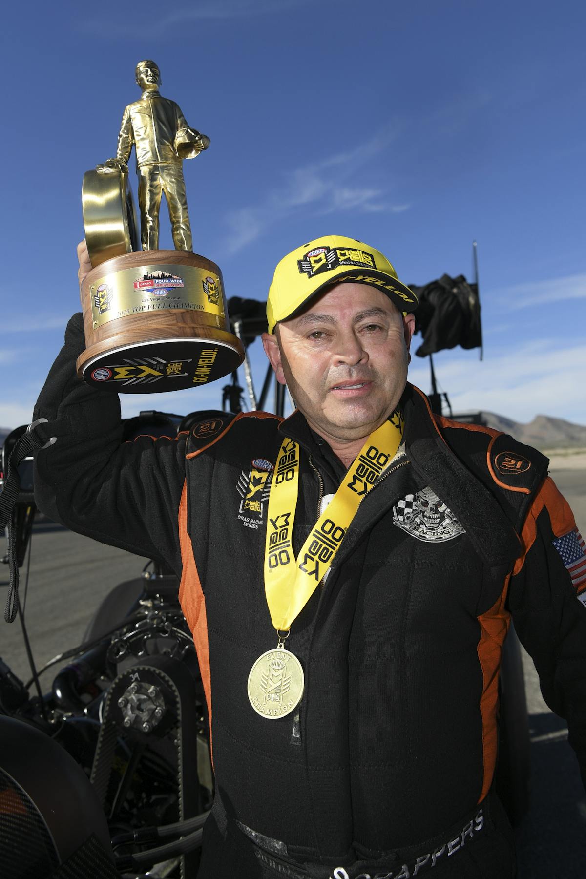 “Anytime somebody has the desire to race Top Fuel and has the financial ability to fund it on his own, you know that guy’s got some passion. We’re trying to reward him, our team, with some wins and a really good run at the championship. And this race here is a pretty good beginning to that,” Johnson said April 7 at the Las Vegas four-wide event moments after Salinas’ first victory in any form of racing.