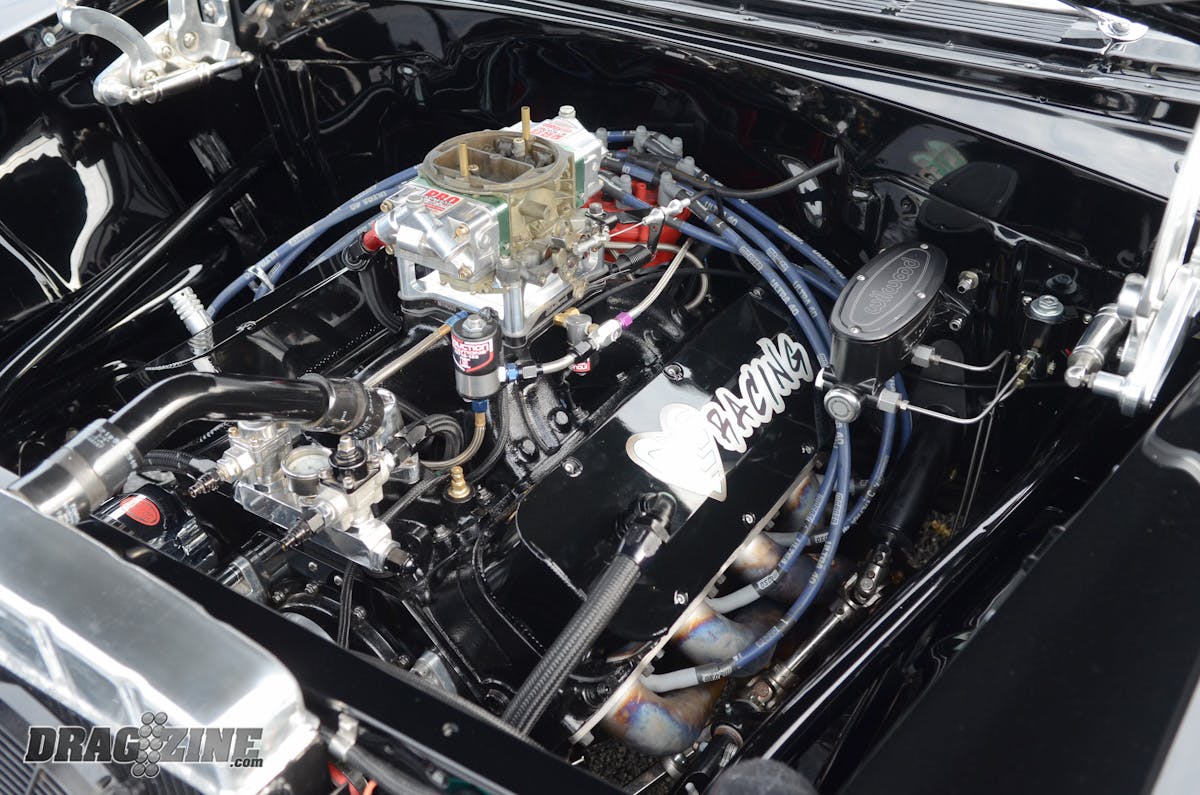 “The motor has gone quite a bit faster than it is right now. We’ve got fairly small jets in it. It was a Limited Street motor at one time and so that’s why I was kind of working toward that class. But my car is really heavy, because I wanted it to be as close to original as possible. There’s a little left in the motor to make it run quicker, but I don’t know how much. If I can afford it, I’ll probably switch it over to a small-block turbo in a year or two.”