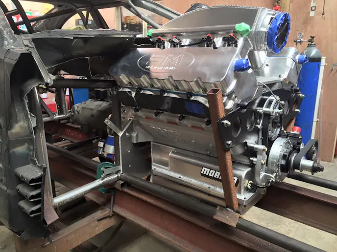 Chamberlin is assembling a 2002 Holden Monaro (the Australian version of what we know as the early 2000s Pontiac GTO) featuring a full chromoly chassis, with a 670 cubic inch big-block assembled by Steve Morris Engines in Michigan between the fenders. The powerplant, a 5-inch bore space Chevrolet with Brodix heads, is paired with a set of 98 mm turbochargers, and on Morris’ dyno, produced 2,992 horsepower and 2,377 lb-ft of torque on Exxon 93 octane fuel and an astounding 4,002 horses and 2,977 lb-ft on C16. That, of course, is plenty of juice to get the job done, and Chamberlin has insured there aren’t any weak links in the package, backing it all up with a Lenco CS2 3-speed transmission and Bruno’s converter drive, a modular 9.5-inch rear end setup from Mark Williams, Weld Racing Delta-1 double beadlock wheels, and a host of other top-flight pieces.