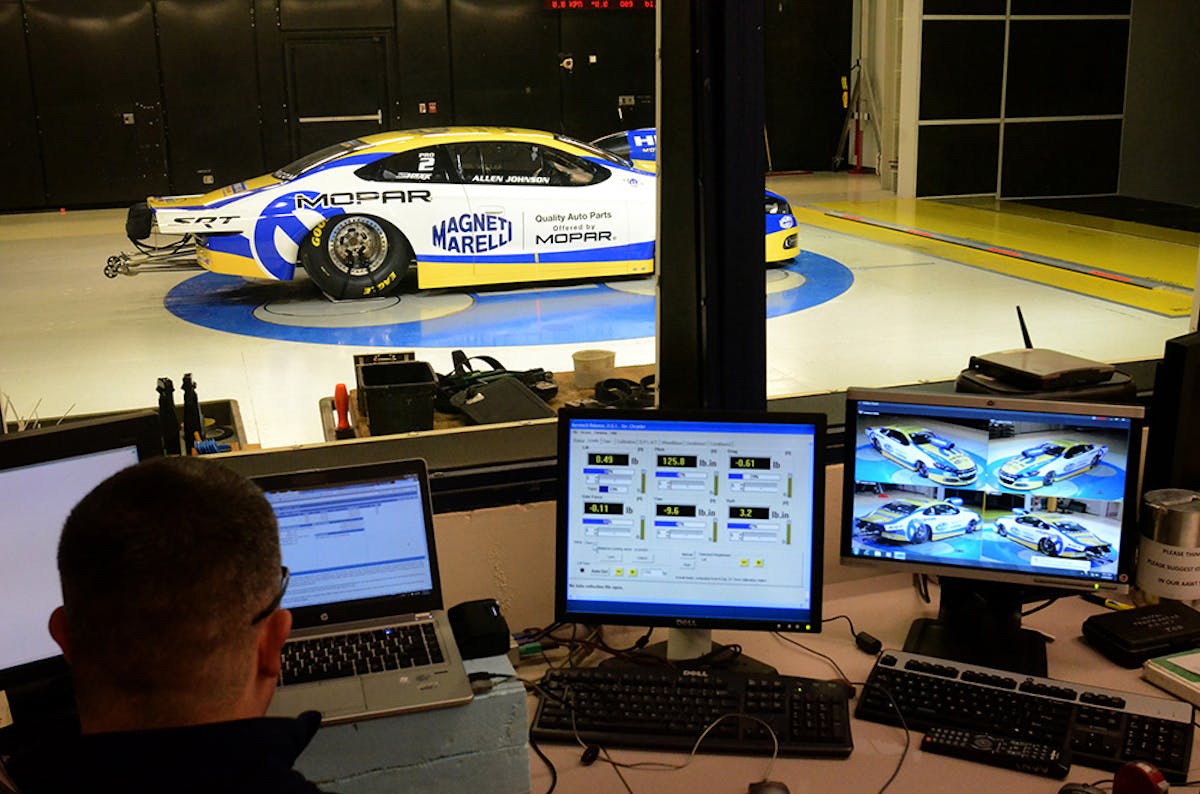 The new ‘Magneti Marelli Offered by Mopar’ Dodge Dart, to be driven by Pro Stock driver Allen Johnson, underwent aerodynamic wind tunnel testing in late February at Chrysler Group LLC headquarters in anticipation of its drag racing competition debut at the NHRA Gatornationals. Photo courtesy Mopar Motorsports