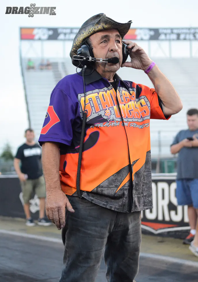 Camp Stanley was one of the original East Coast “Wild Bunch” racers who helped to get the Outlaw Pro Mod category off the ground and into the forefront of the racing public’s mind in the early 1980s. These days, Camp turns the screws on the incredibly stunning brand new Larry Jeffers Race Cars-built Cadillac CTS-V driven by none other than his son, John Stanley.