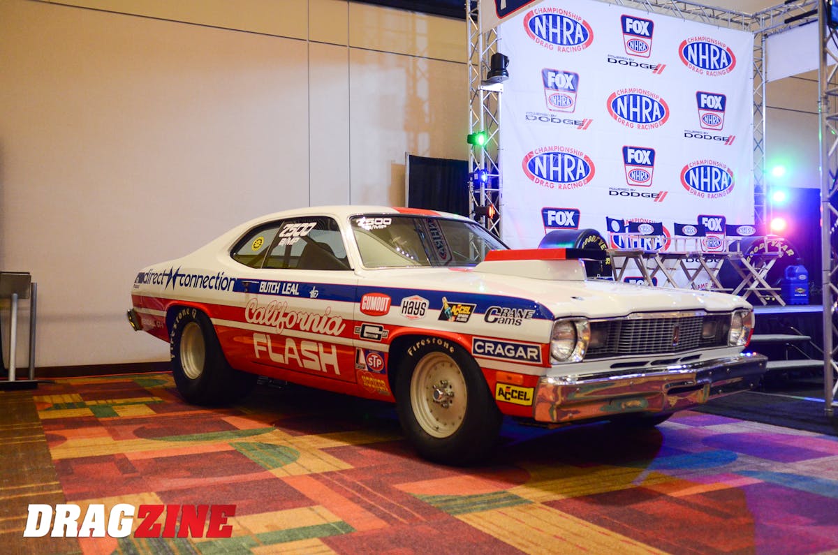 Among the cars on display are NHRA U.S. Nationals Top Fuel champion Terry McMillen’s Amalie Oil dragster, NHRA Pro Stock Motorcycle world champion, Matt Smith’s bike, Ryan Martin’s familiar Fireball Camaro and Jeff Lutz’s sleek ’57 Chevrolet made famous on Street Outlaws. We also found Larry Dixon’s wild two-seater Top Fueler, Leah Pritchett’s Factory Stock Showdown title-winning Dodge Challenger, the new 2018 Mustang Cobra Jet, the Beer Money Mustang from our very own Horsepower Wars $10K Drag Shootout, and many more.