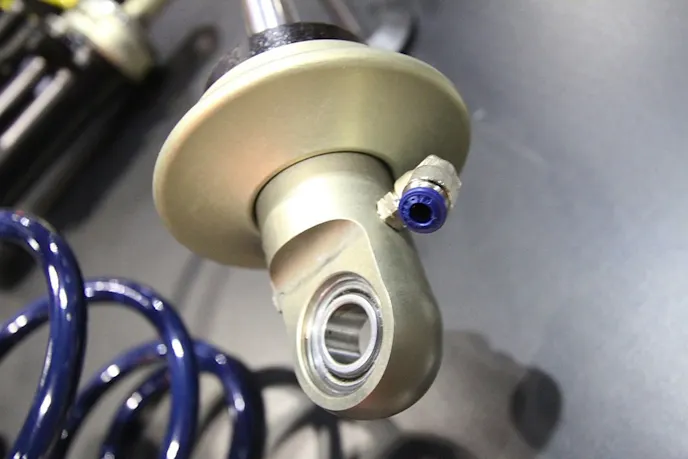 all of our shock absorbers are built to order according to car and driver specificationsAaron would also show us a new feature that can be attached to the 8760 eyelet that provides teams with a way to raise the nose of the car up after they cross the finish line. Tracks tend to get rough after the line and this helps keep the body and chassis from hitting the track in these bumps. “This allows racers to reduce the rebound face of the shock at any give point down the track,” explained Lambert.