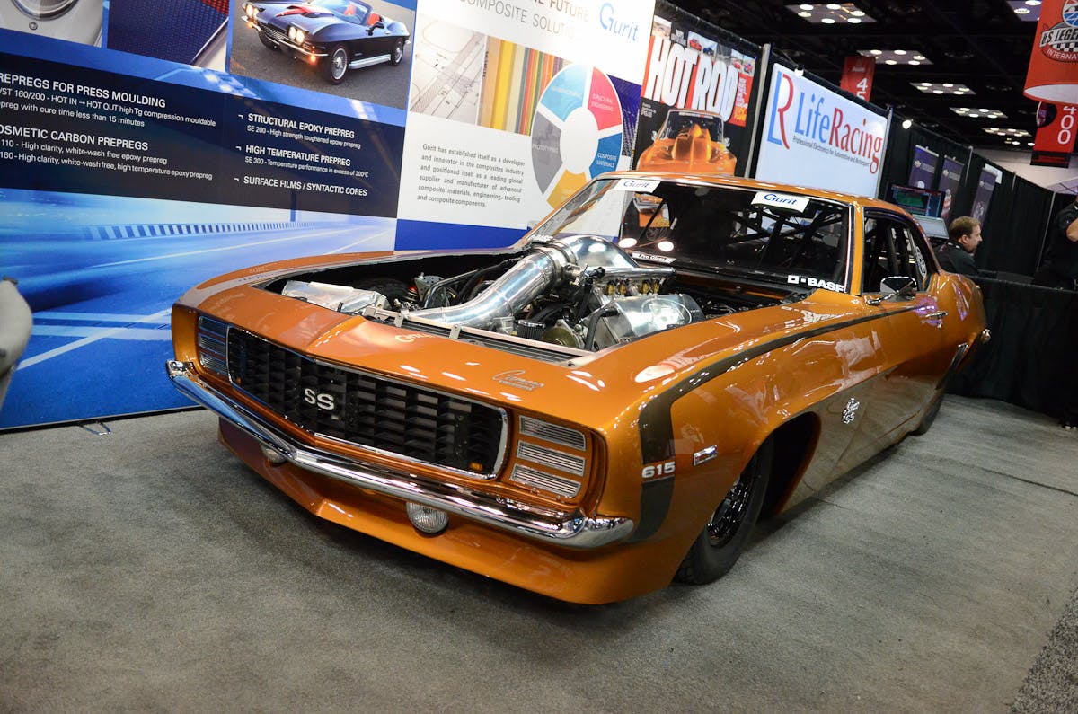 From Nostalgia Nitro Funny Cars and Alcohol Funny Cars to the famous machines of Discovery Channels’ Street Outlaws, it’s all here. You’ll notice an all-new Chevrolet Camaro Top Alcohol Funny Car body that Five Star Bodies has developed and put on display here at the show. As we understand, GM has been entertaining at least one NHRA nitro team, as well, perhaps marking a return to Funny Car racing for the vaunted Camaro. Also on hand is Tom Bailey’s all-new, still-in-progress Sick Seconds 2.0 Camaro being built by Skinny Kid Race Cars, Morgan Lucas’ nostalgia flopper being shown to the public for the first time, Dina Parise’s gorgeous Cadillac CTS-V Pro Mod, and the quickest radar tire car in the world, belonging to Brad Edwards.