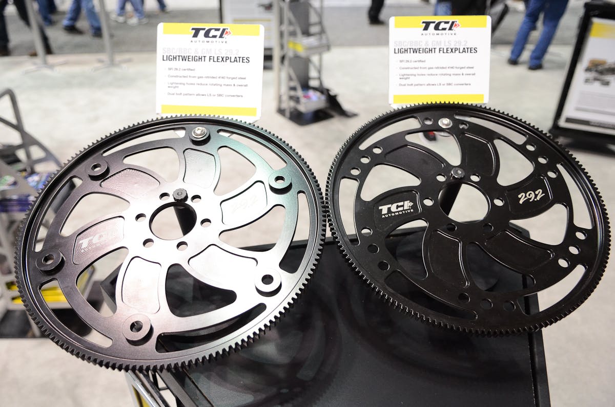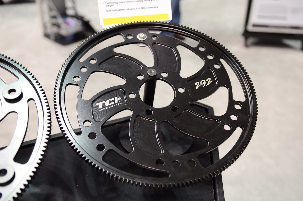 TCI is also showing off their all-new Lightweight Flexplates, designed with dual bolt patterns for LS and small-block Chevy converters. TCI has manufactured these from gas-nitrided 4140 forged steel and has significant lightening holes to reduce rotating mass and overall weight, dropping the weight by near or just over one pound depending on the model, and also providing a great look in the process.