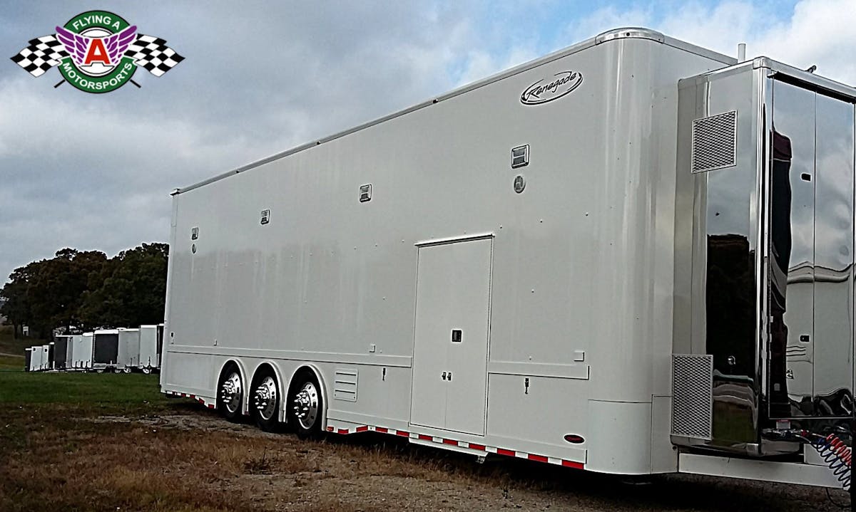 The standard inventory on Flying A’s lot includes units that have the standard cabinets and electrical items your typical weekend racer will need. If you’re a hardcore racer that needs to haul multiple cars and equipment to the track Flying A has you covered as well. These trailers are move-in ready, so they don’t need anything but something to pull them with and cars to fill them.