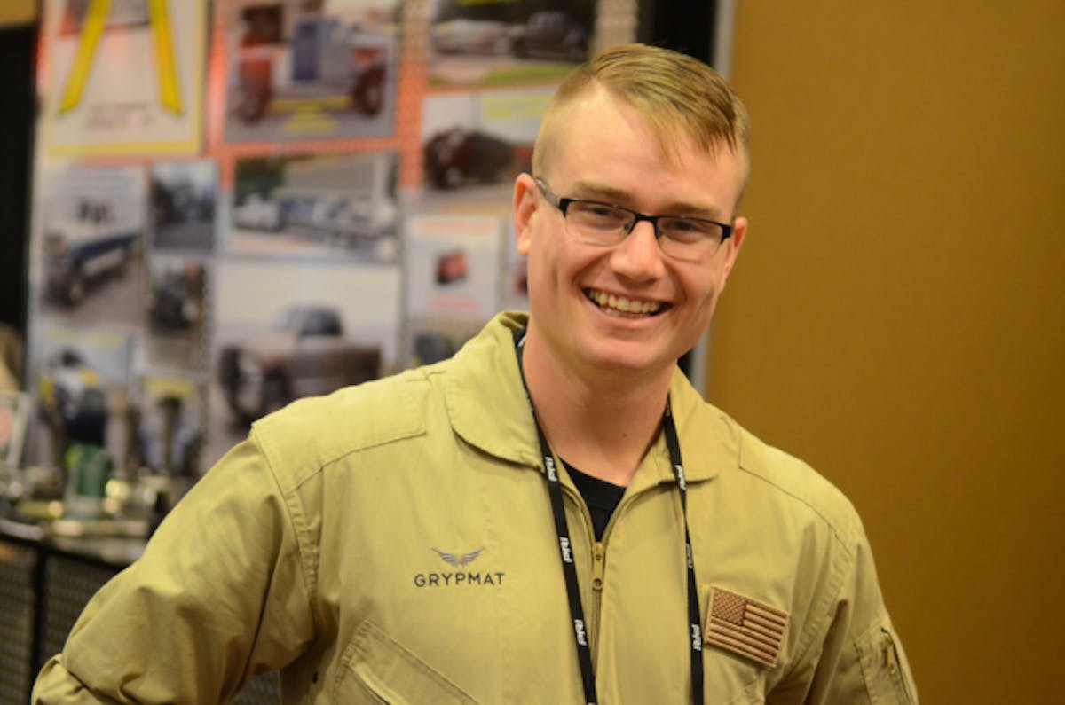 Have you ever wished you could just magically lay your tools and parts anywhere you may be — on the fender of your car, on the roof, atop the engine or scoop, or in the case of Grypmat founder Tom Burden, right on the rounded nose of an F-16 military aircraft you’re working on? Best case scenario, if you’re under the hood you can lay a tool tray across the radiator or in the slant of the valve cover and hope it doesn’t fall — and forget laying parts on your paint, much less at an angle where they’ll simply slide right off.
