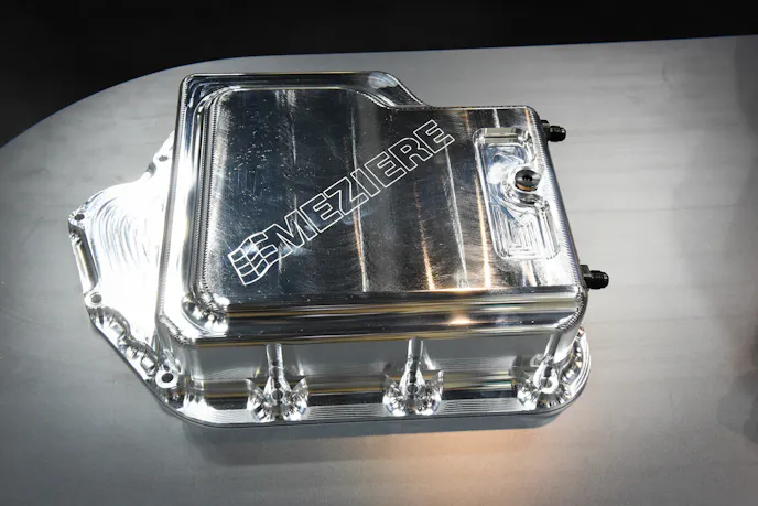 Meziere Enterprises, expanding on what it has learned from its heat-heat-exchanging billet transmission pan for the Powerglide, has developed a sleek new pan for the