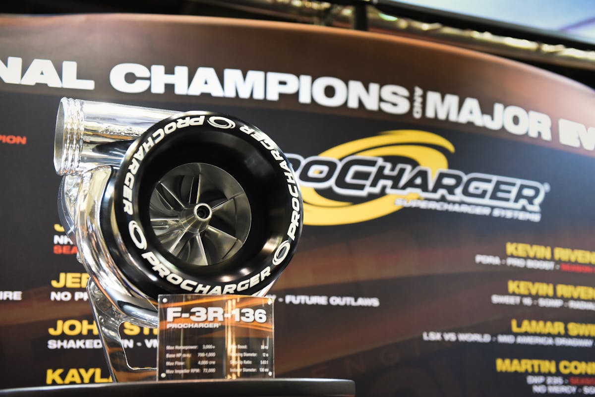 ProCharger has also recognized many of its engine building partners this year, with bullets from Sonny’s Brad Anderson, Pro Line, Noonan, PAR, and Steve Morris all on display.