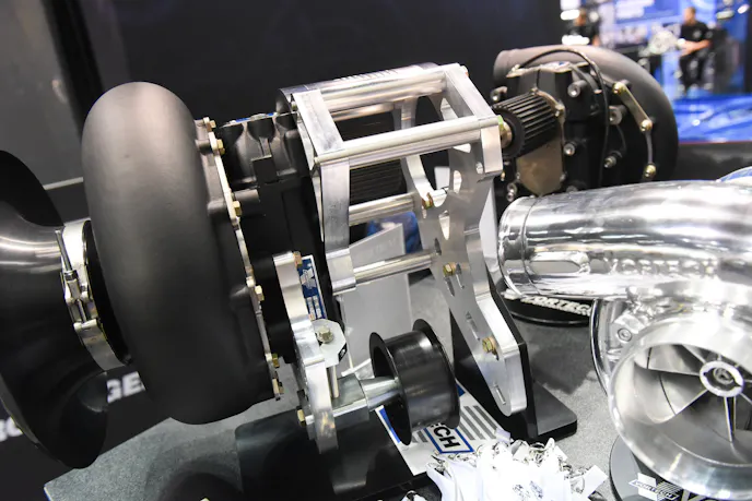 The V-17, in its standard trim, has a discharge O.D. of 3.5 inches, inlet O.D. of 5 inches, inducer diameter of 4.20 inches, a max speed of 65,000rpm, and a 35psi boost maximum, allowing it to move 2,900cfm and deliver 1,700 horsepower.