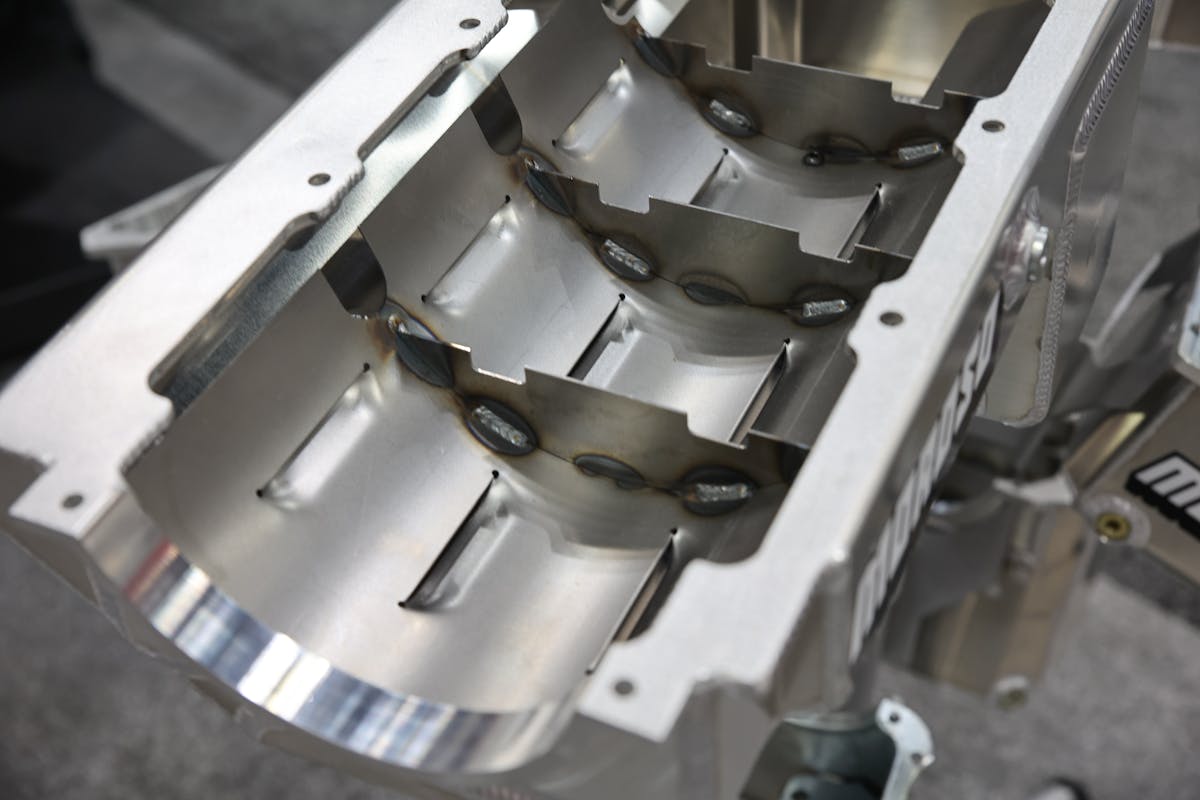 “We had some great fabricated oil pans for the older big-block Chevy engines and used what we learned with those pans to create these new pans. The pans are very durable and use billet front and rear seal surfaces for better sealing with the block. This helps to fight crankcase pressure to keep everything sealed up. We also added bracing to the pan to increase its strength.”
