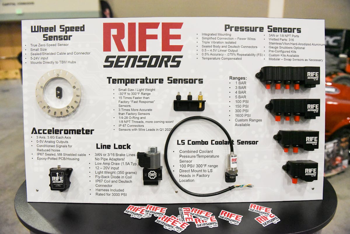 Rife Sensors, an offshoot of the familiar California-based brake manufacturer, had its coming-out party here at the PRI Show, unveiling its lineup of very trick pressure sensors, air/water temperature sensors, accelerometers, and other sensors.