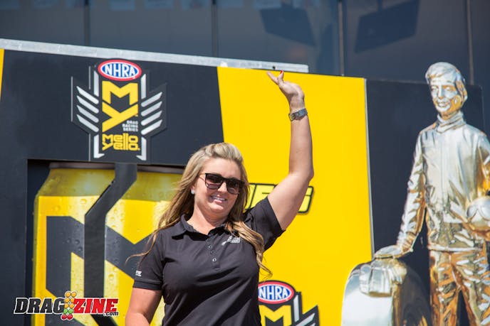 “In a Pro Mod car, it’s automatic, and then the Pro Stock car it’s a clutch with a five-speed. You have to shift four times. Going back and forth between the two, you’re not as busy in the cockpit of the Pro Mod car, but when you let go of the trans-brake button to leave the starting line, I literally have no idea what it’s going to do. I don’t know if we’re going to make a great pass and go 5.70 at 257 or if I’m going to take out the Christmas Tree, the guard wall, and my competitor. I have no idea. It’s a crazy car to drive,” she said. “Then Pro Stock, I’ve driven that for 14 years, and I am confident every time I get in that car. Whatever it throws at me I can handle. I do not feel that way yet in the Pro Mod car. I’m not sure anybody ever will, because it’s just a crazy car to drive.”