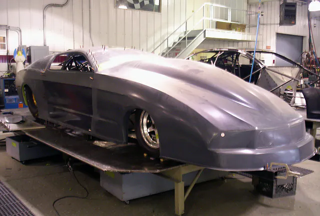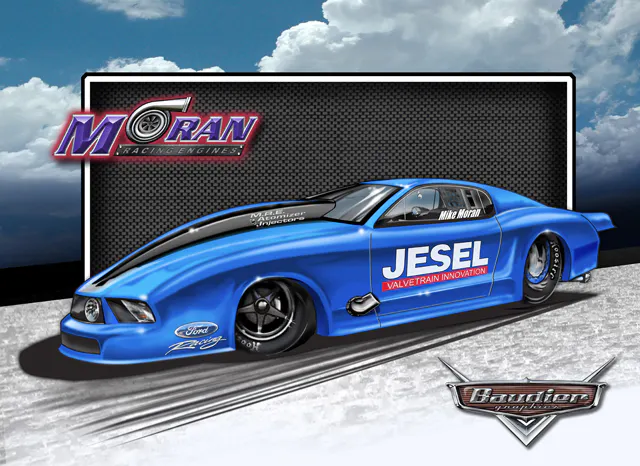 Moran: To be honest, it was mostly my partner, Bart Lemieux. He kept suggesting that we go with the Ford and I told him that we’d have to do a lot of work to get a body where we wanted it. We could do a Chevrolet body and I could have an aerodynamic body the way I wanted it, right away. He convinced me to talk to Joe King and Jesse Kershaw at Ford Racing and because they’re right here by the shop, they’d stop by every two weeks and ask “are you ready yet?” I told them if they were serious we’d sit down and talk, and we did. I told them I was going to run my own powerplant and it wasn’t going to be a Chevy, Chrysler or a Ford. I was going to design my own motor, but we’d put the Ford name on everything. We were going to have completely reshape the body and so they were going to have to supply a couple Pro Stock bodies and work with me on some parts.