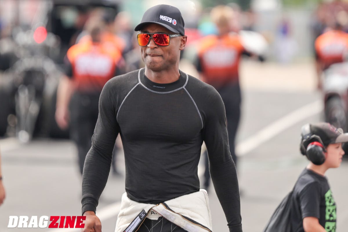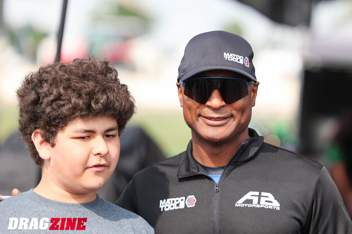 “He DMd me on my Instagram, been a drag racing fan forever,” Brown said of the music-industry VIP who composed and produce hit songs for the likes of Michael Jackson, Janet Jackson, Mariah Carey, Usher, Mary J. Blige, Boyz II Men, Chaka Khan, and Earth, Wind & Fire. “He’s from Minneapolis. He used go to Brainerd, Minn., with his dad as a kid. He came out to the racetrack and hung out with me in my pit.”