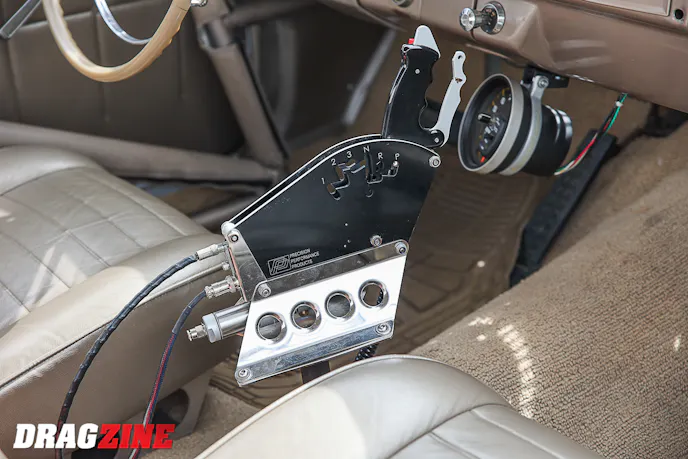 Staying perfectly period-correct was important to Langefeld, both for personal reasons as well as to comply with the NMCA NSS rules. So, he selected a Chrysler TorqueFlite 727 automatic transmission built by TCI, a modern, 5,000-rpm stall speed PTC torque converter, Precision Performance shifter, and an aluminum driveshaft with a safety loop.