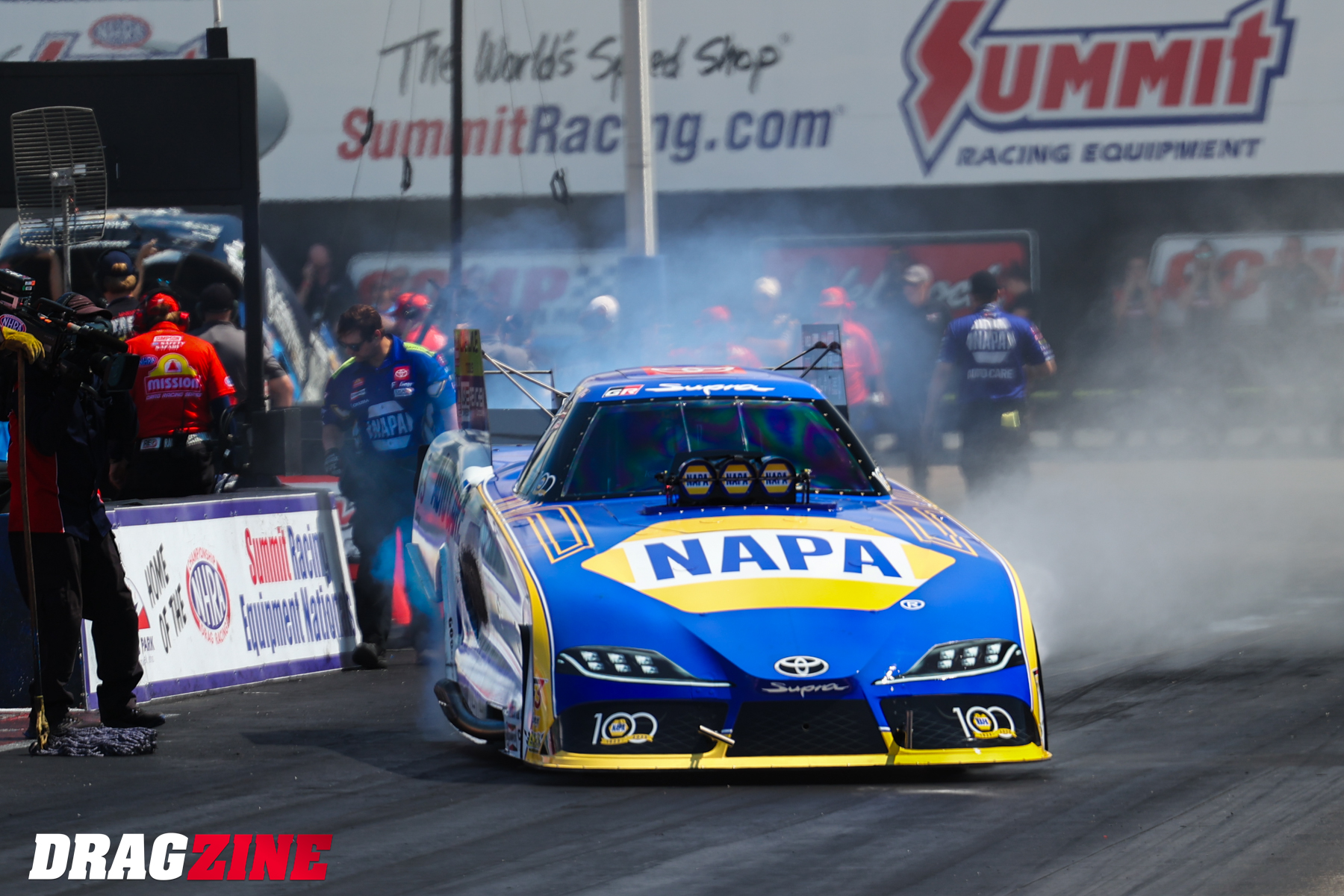 His JFR teammate, Jack Beckman, who ended up finishing second to Prock as a fill-in for injured John Force last season, has put up a noble fight with victories at the Winternationals and at Chicago and a second-place finish to Prock at Richmond. But after 11 races, Beckman is 140 points off Prock’s pace. And third-place Matt Hagan, eager to score his fifth championship and first with first-time crew chief Mike Knudsen, is 166 behind Prock.
