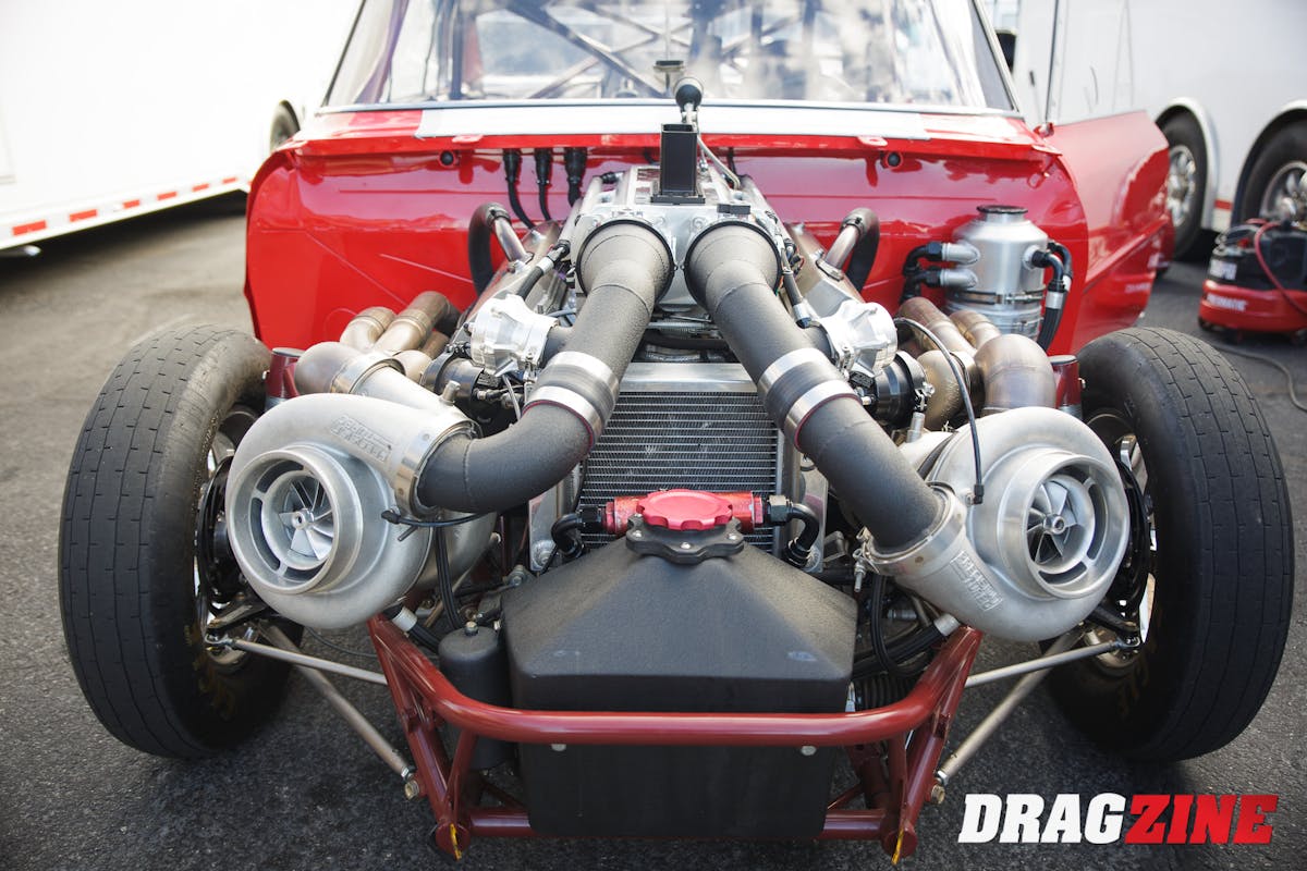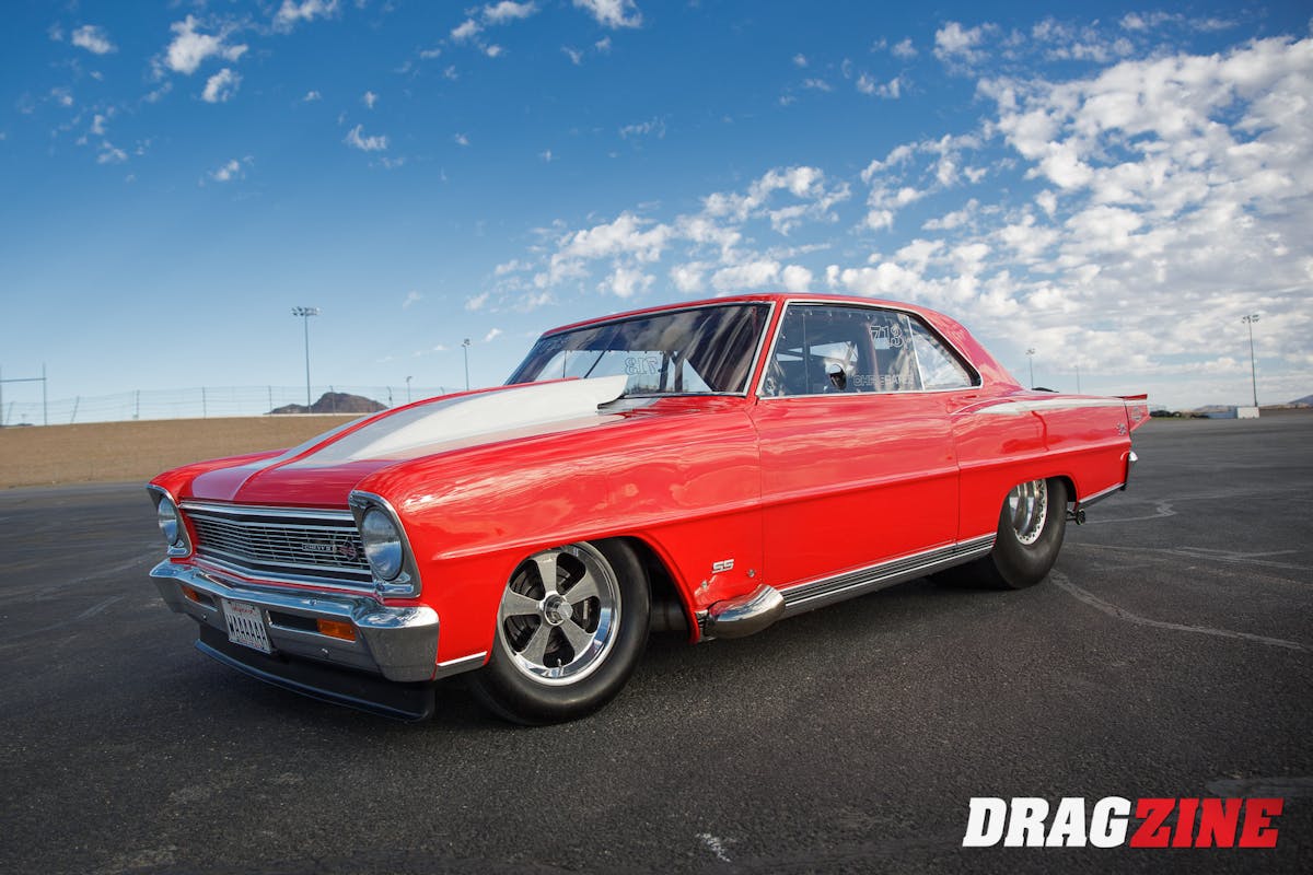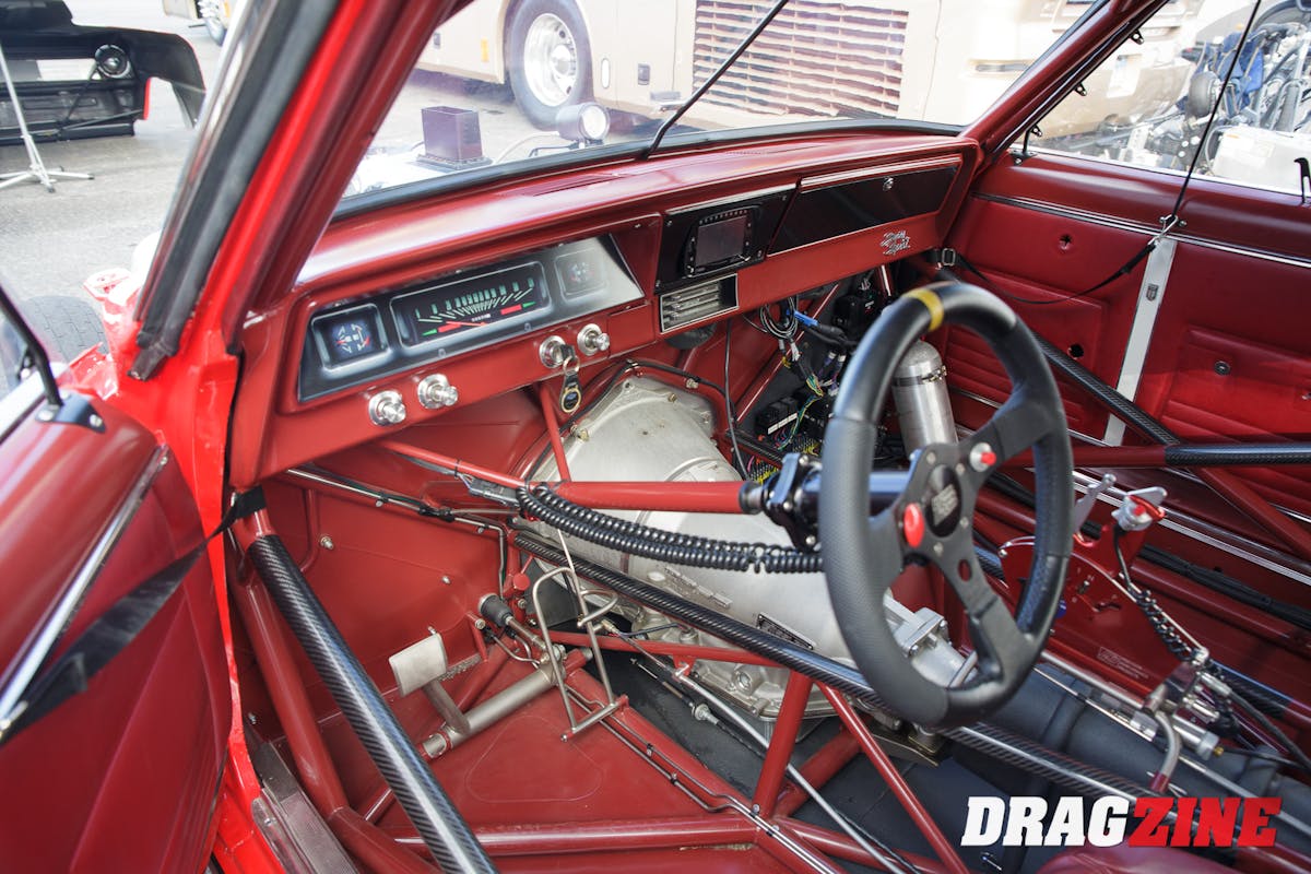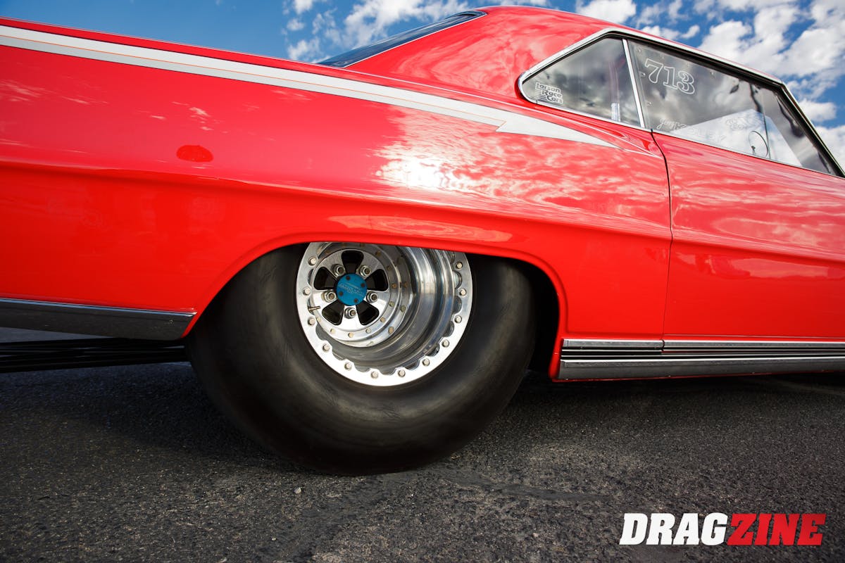 Wahl likes to keep the shiny side up when he races, so he has toned his Colt down with a 360 small block under the hood. Sporting two four-barrel Holleys on a Weiand intake, it produces 530 hp and 525 ft-lb of torque. The Powerglide transmission hooks into a Dana rear end spinning 32-inch slicks. A Lamb strut front suspension makes for an easy-handling bracket car that runs 9.89 at almost 136 mph.