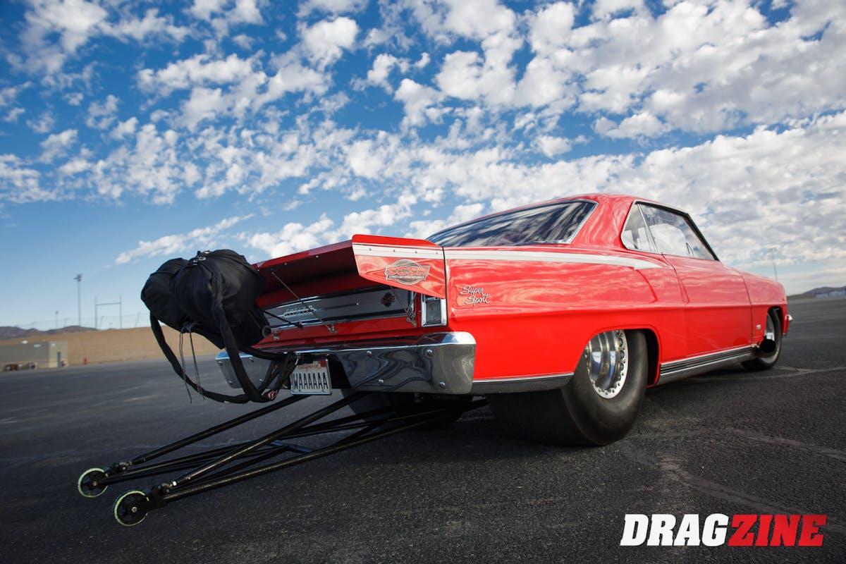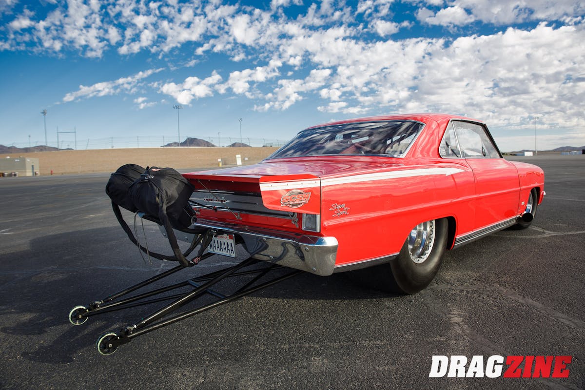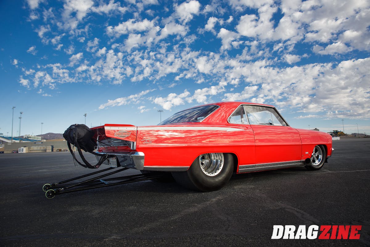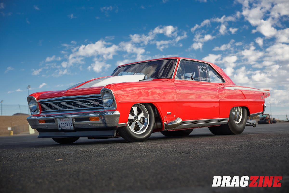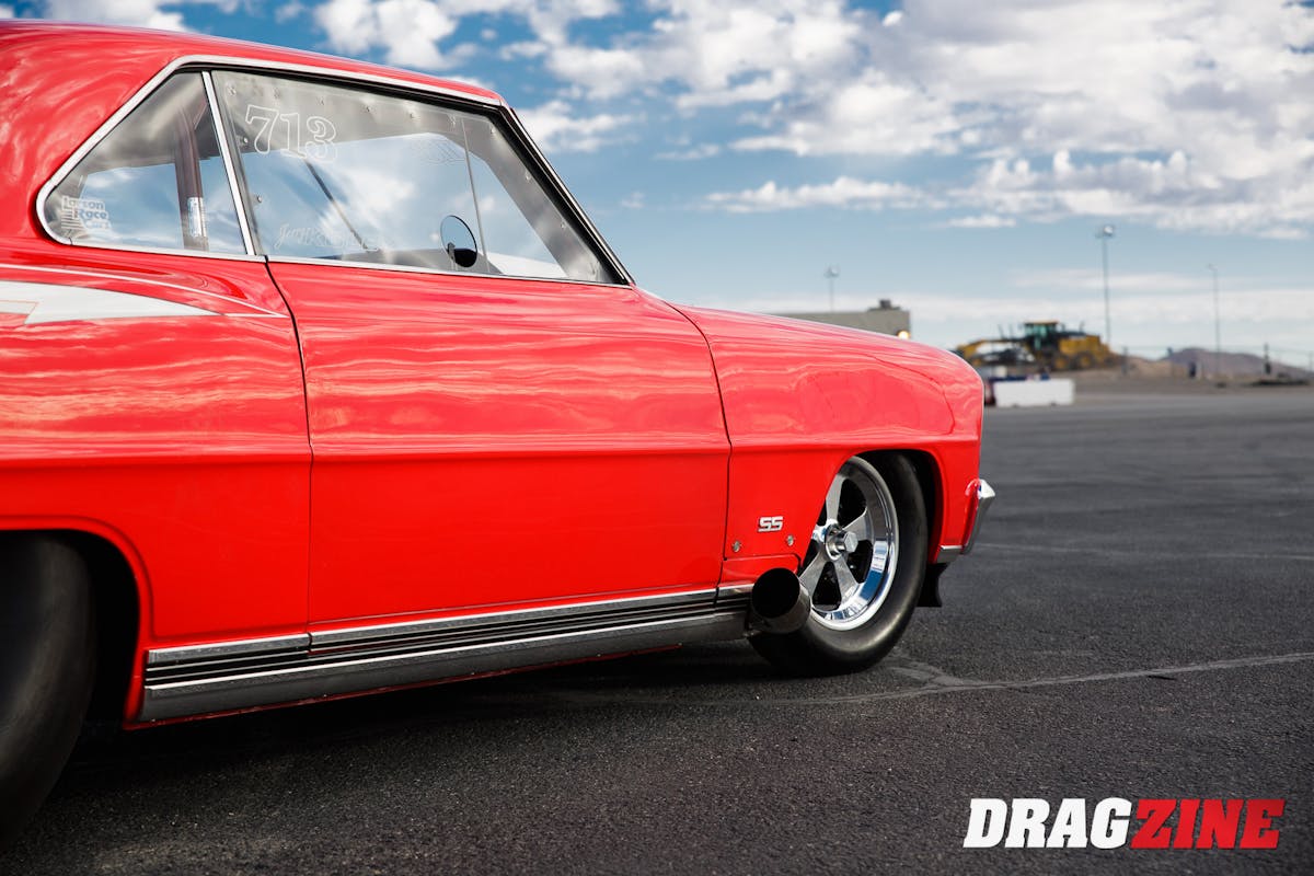 Wahl likes to keep the shiny side up when he races, so he has toned his Colt down with a 360 small block under the hood. Sporting two four-barrel Holleys on a Weiand intake, it produces 530 hp and 525 ft-lb of torque. The Powerglide transmission hooks into a Dana rear end spinning 32-inch slicks. A Lamb strut front suspension makes for an easy-handling bracket car that runs 9.89 at almost 136 mph.