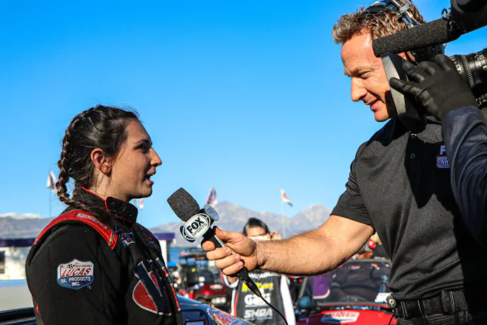 She does know that she isn’t about to put any pressure on herself to assume that role: “I’m going to do whatever I need to do, either way. If they don’t want to make a big deal about it, that’s OK. But I’m still going to do it. It’s all about John Force or the guys who have been around forever, and I get it. But they’re going to have to retire at some point, and who are they going to talk about then?”