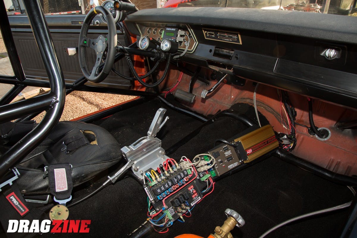 One of the only non-Mopar things in Billy’s Demon is the transmission. An ATI Powerglide built by Jimmy Pritchett got the nod to head up the driveline. Transferring the power to the transmission is a 4,000 stall ATI converter. Billy changes the gears going down the track via an Aerospace Components shifter.