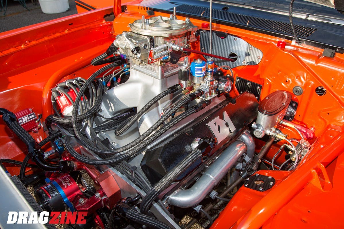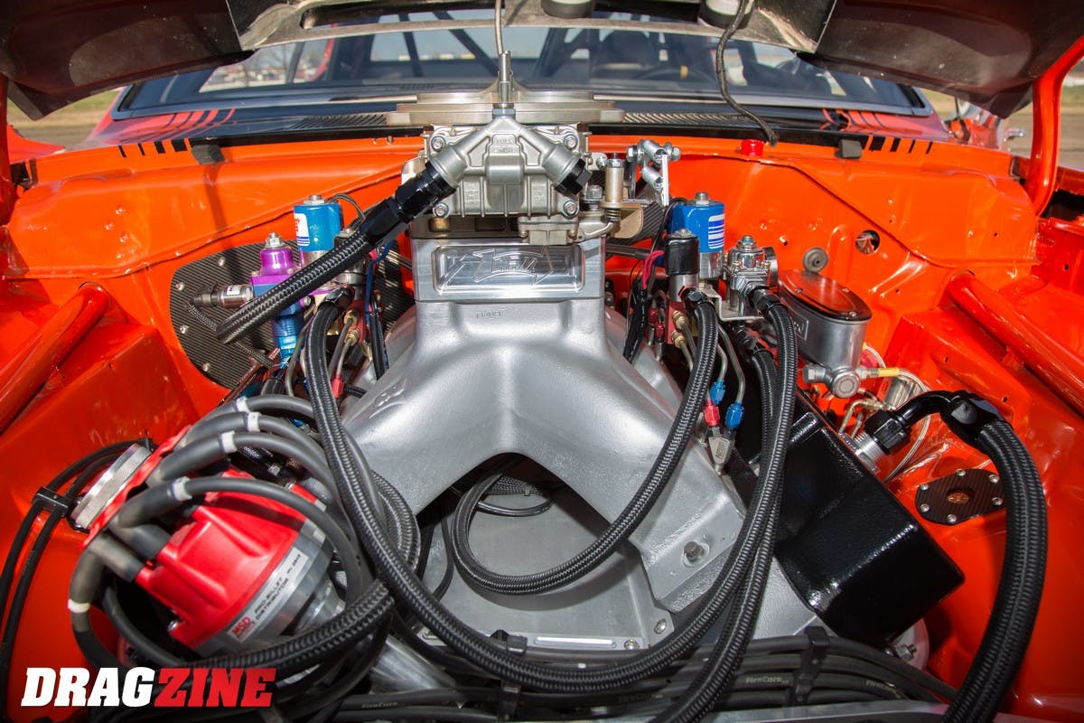 For cylinder heads, Billy used a pair of aluminum Brodix B1 heads from Koffel’s. The heads have been outfitted with 1.7 ratio rocker arms from T&D, 2.30-inch intake, and 1.81-inch exhaust valves help move air around the combustion chamber. A camshaft from Bullet Racing Cams rounds out the top end of this stout Mopar mill.