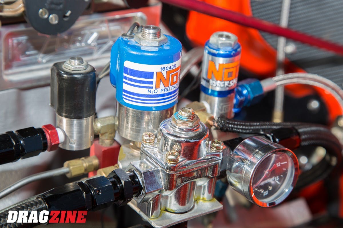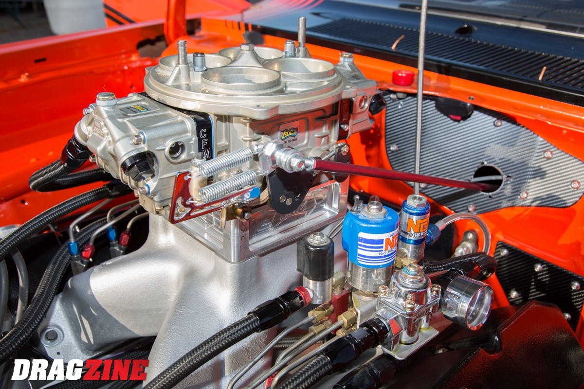 To run in the NMCA’s Xtreme Street class, you need to be packing a pretty solid power-adder combination if you want to make the field, and Billy elected to feed his Mopar a healthy dose of nitrous oxide on race day. He’s using an NOS single stage fogger kit with the class legal .028-inch jet. He’s still working on sorting the car out, but has been able to run a best elapsed time of 5.30 in the 1/8-mile at 130 mph, with a very respectable 1.20 60-foot time.