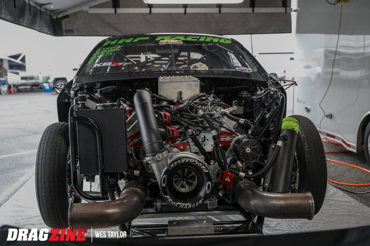 Inside the car, Billy is strapped into the 25.4 certified roll cage with a set of G-Force seat belts. He kept the interior simple and clean, covering it with a nice black racing carpet. To monitor the Demon’s vitals as he goes down the track, he uses a mixture of Autometer and AEM gauges.