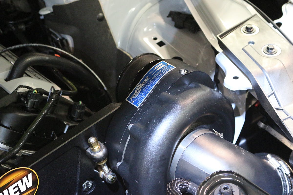 ProCharger has assembled a complete supercharger system designed to add even more pep to the already potent 5.2-liter, 552 horsepower, naturally-aspirated GT 350 — the latest Ford ponycar to carry the Shelby badge. As ProChargers’ Erik Radzins tells us, the basis of this new system is their tried-and-true P-1SC-1 supercharger, which is their entry level street kit; set up with six pounds of boost, it amps up the horsepower on the GT 350 to around 660 horsepower to the rear wheels when combined with the supplied tune.