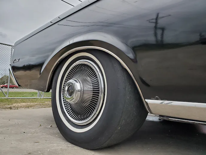 To certify the sleeper appearance, Davis sourced a set of solid-center steel wheels and bolted on the classic, factory Mark III hubcaps. Davis notes of the granny hoops, “Those turbine hubcaps are heavy — you can’t hardly get them off without damaging them. I actually have to use wooden wedges that I cut out of 2x4s to get them off, because if you put a tire tool in there, the retention device is so strong you’ll ruin the hubcap.”