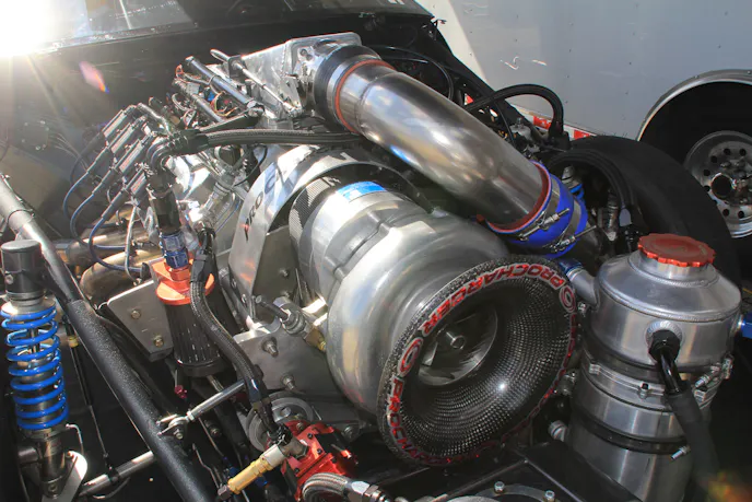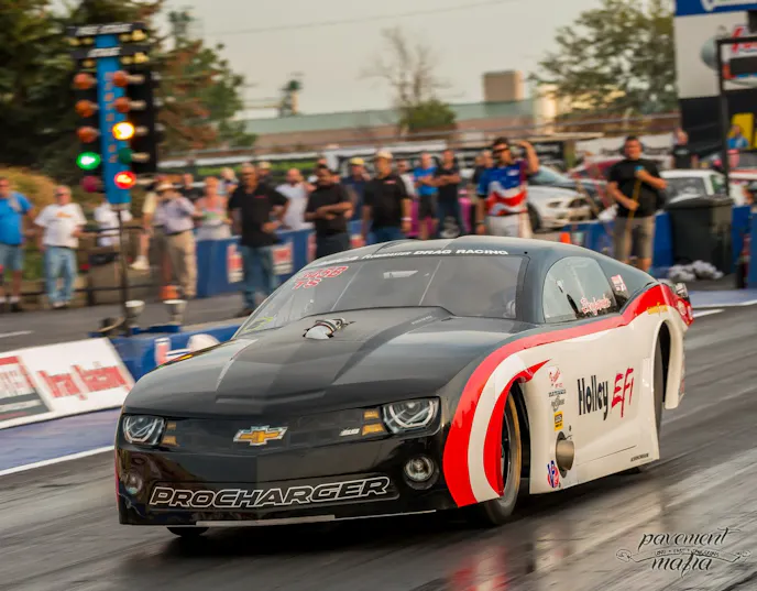 IMG_9872The combination, he shares, has been both ultra-consistent and relatively low on maintenance, owing to the reliability of centrifugal supercharger combinations when paired with an engine built to handle it. In 2015, he ran a single blower belt the entire season, and says it still looks brand new. “We don’t even have to cool it own methanol between rounds. We change the plugs just so we can get a good reading every pass, but other than that and fueling it up and charging the battery, that’s about all of the maintenance we do.”