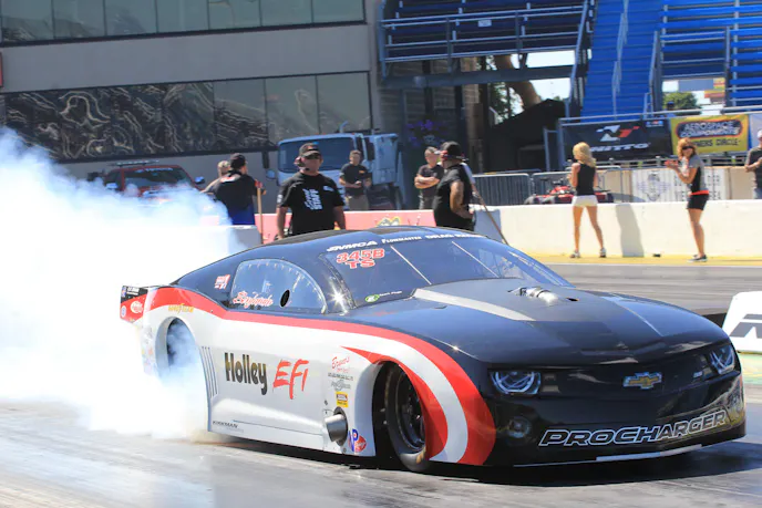 “I’ve been running this combination for 11 years in Top Sportsman, and we’ve been running the SB2.2 with the 121 for about three of those 11 years. When we first started a decade ago, we had mechanical injection and then switched over to the Holley system three years ago. We were having trouble burning cylinders up with the mechanical injection, because we couldn’t get it to correct itself, so we switched over to EFI. The Holley setup helped us resolved all of the issues that we were having both with the mechanical system and other EFI setups that we tried,” Board explained.