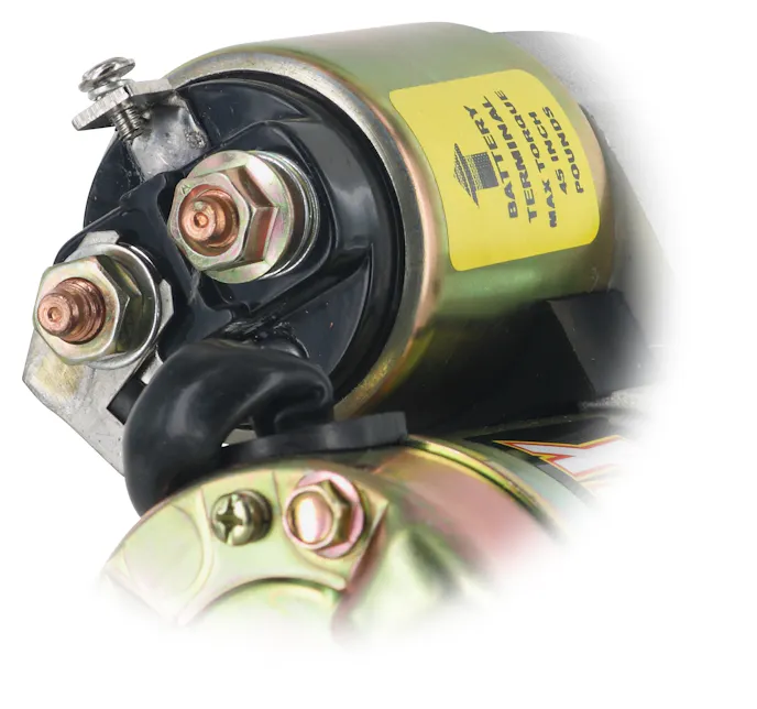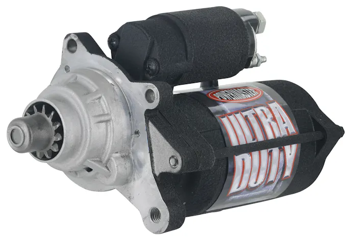 The Original Look retro-style starter produces 100 lb-ft of torque, 1.4 kWh, and 1.8 hp. It also features a direct-drive, large armature, and a big field coil for applications up to 10:1 compression ratio.