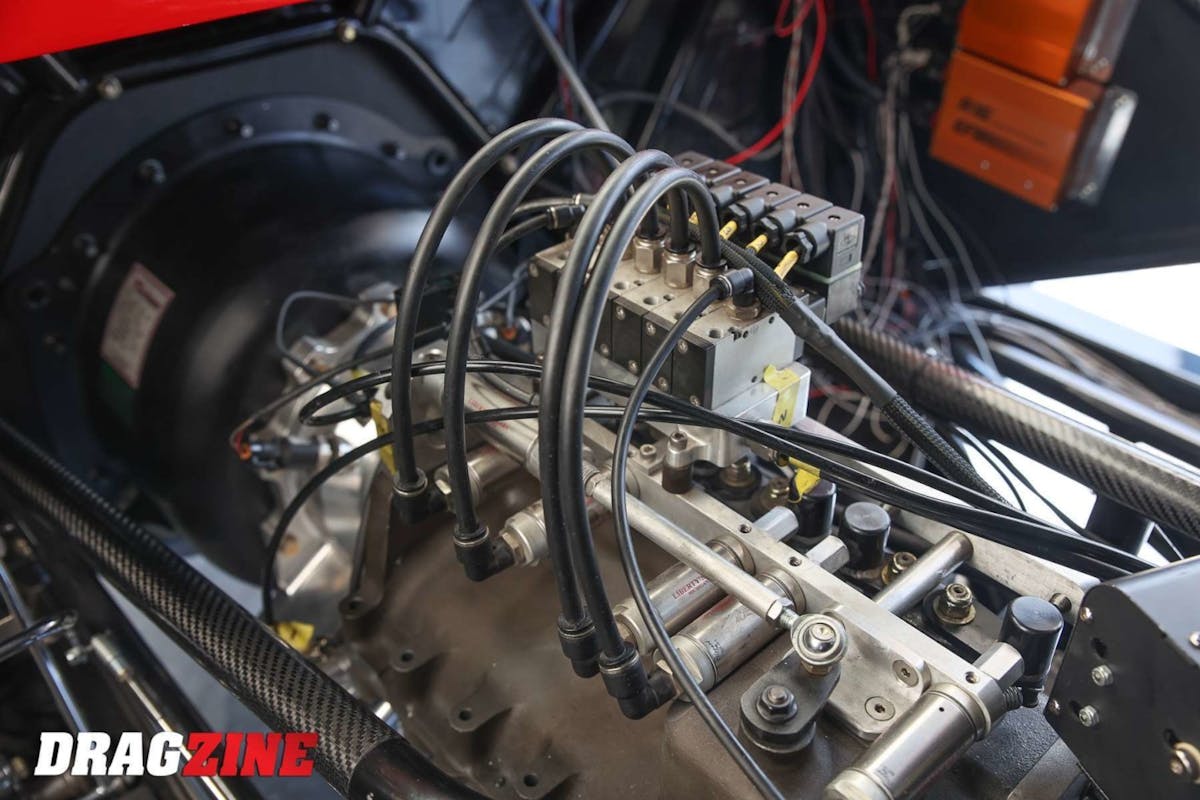 Parker opted to go with a full electronic fuel injection setup, as opposed to traditional mechanical injection, and worked with EFI Technology to get the system set up. “It’s the same computer we use in the nitrous car and we stuck with it because we’re already so familiar with it,” noted the man who admittedly had to overcome a learning curve to build the new fuel maps and timing curve required for the new configuration and combination.